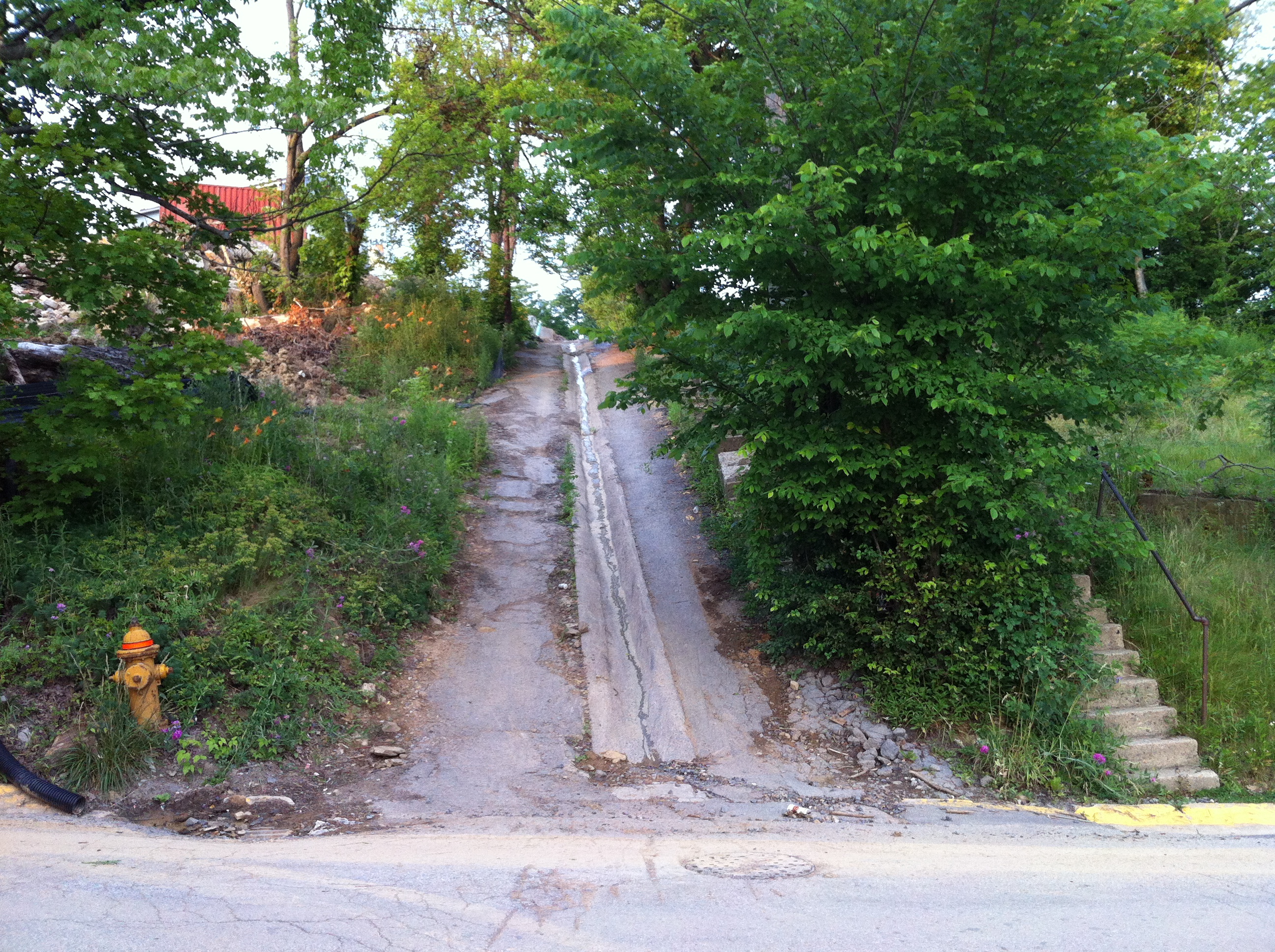 The developer of the new condominiums on the uphill side of Jones Av. between First St. and Overhill St. wants to close First St. between Jones and the condos. The developer said he would upgrade the steps there. (See attached photo.)