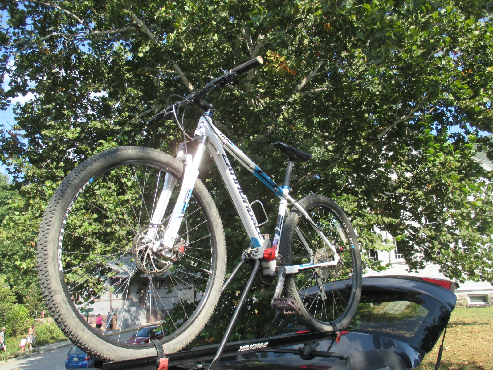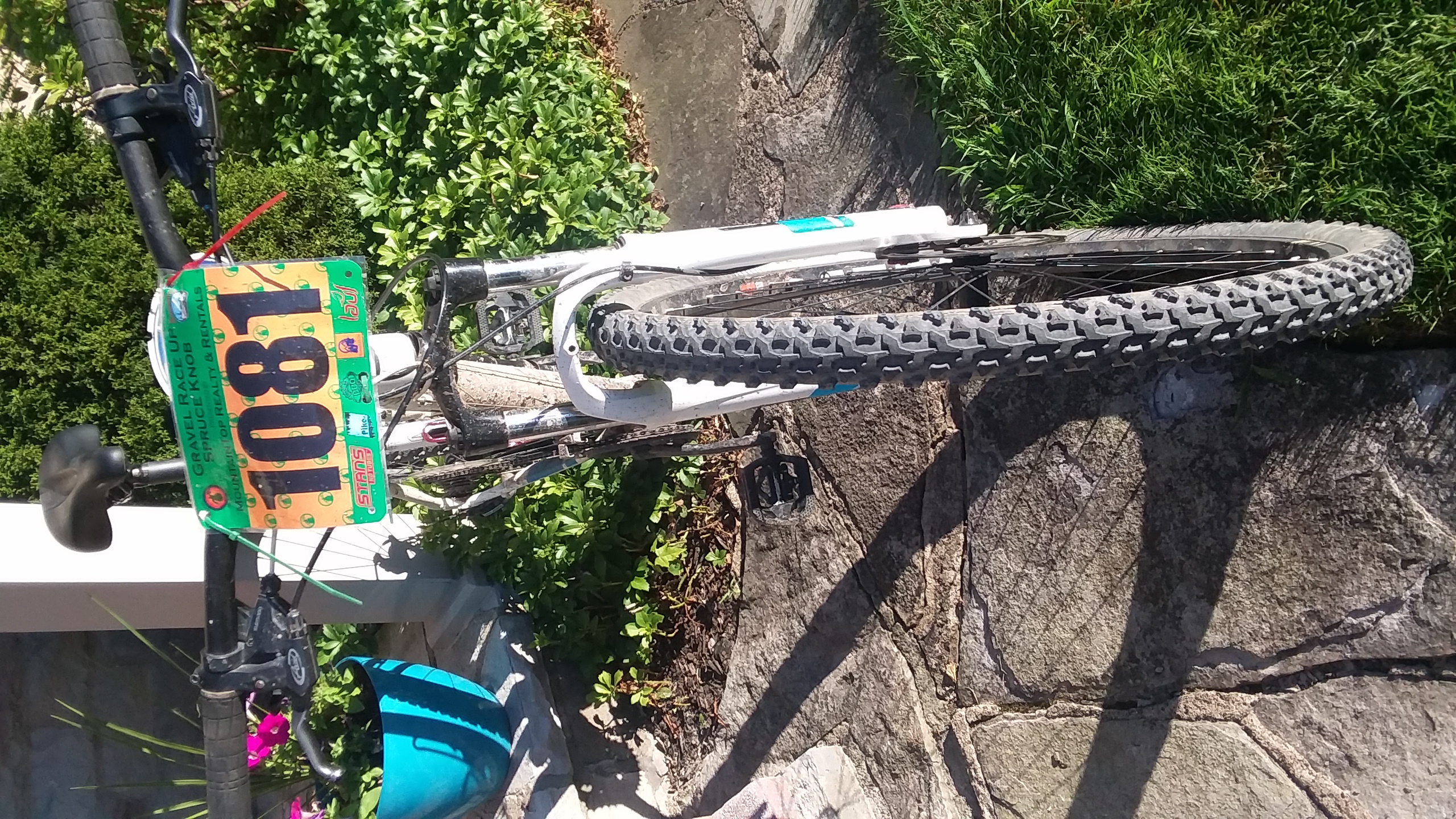 MTB was stolen off of my back porch sometime between 9pm July 7 and midnight the next day (July 8-9). I just noticed it, cable lock was severed. The bike is white, Cannondale brand, Trail 6 model, with blue & black lettering, 29 inch tires. It has an ABRA sticker on it, 2 water bottle cages & a hand pump. I have pictures of the bike attached. Two old pics & one from Saturday after the GRUSK.