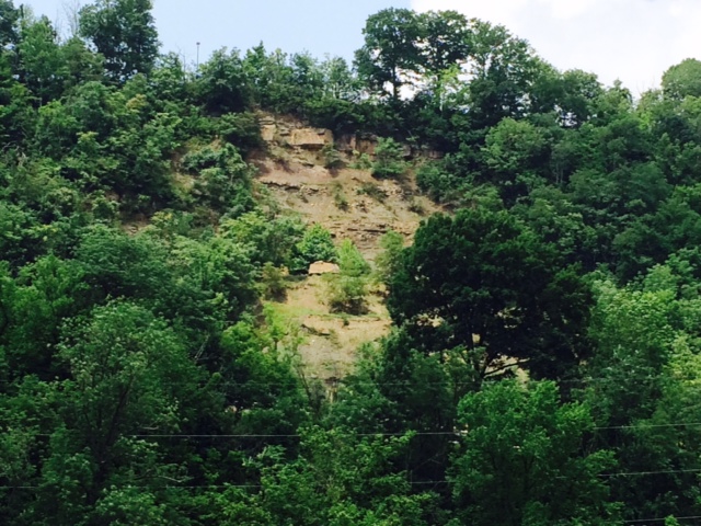 Bank stabilization (wire mesh or other techniques) in two places on the hillside behind the WVU greenhouse. Many areas of hillside are stabilized by vegetation and may not require a man-made fix.
