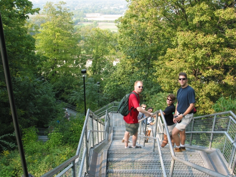 My thinking is that Morgantown should be thinking about making it easier to walk and bike than to drive a car throughout this hilly city and having a standard that says redevelopment and new development shall include steps up every steep slope that connects significant trip origins and destinations and the steps shall include a bicycle ramp.