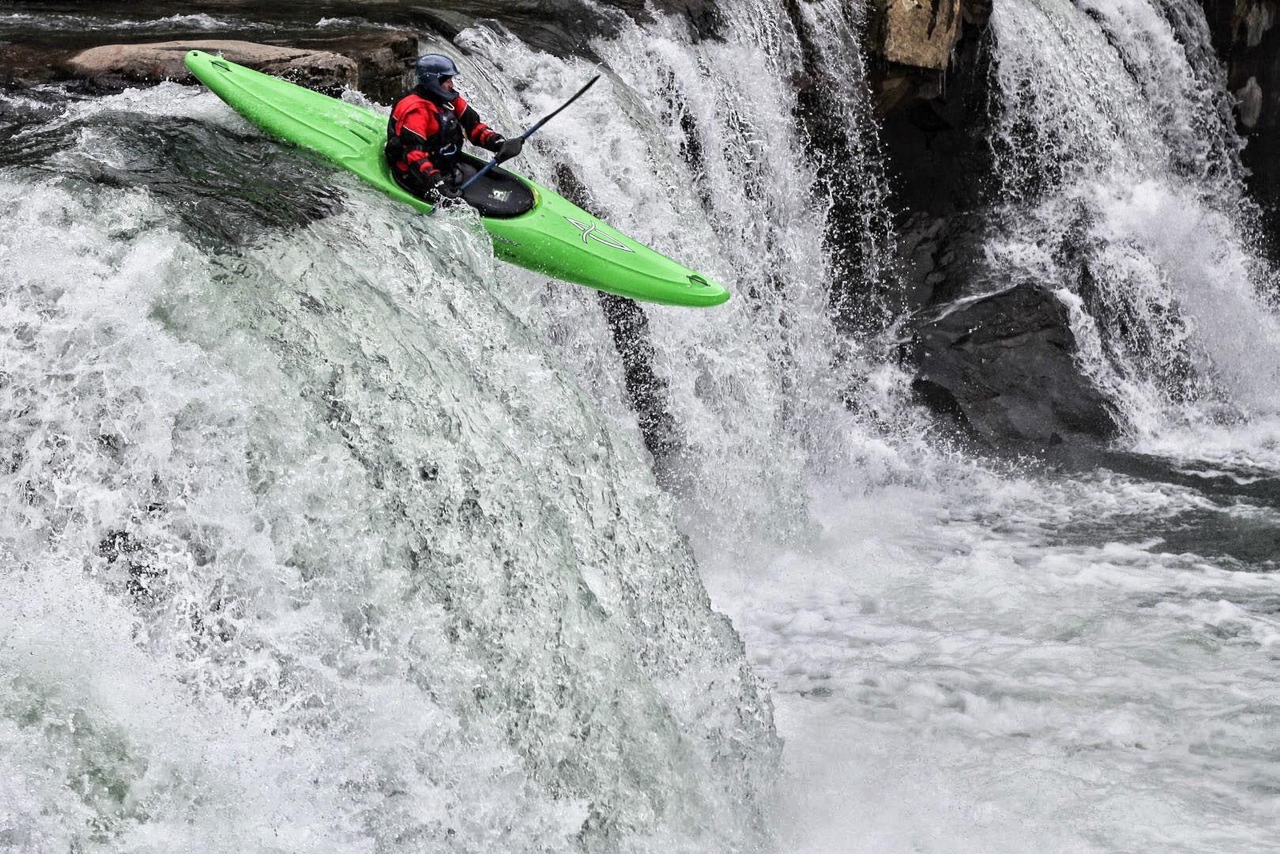 Kayak full face maneuver on Big Sandy in Preston County northern WV.